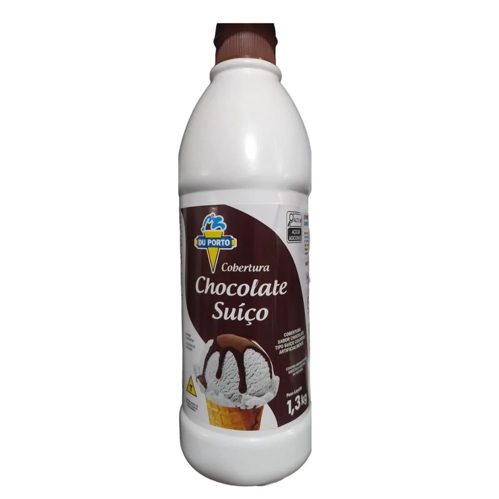 A cobertura Du Porto Chocolate Suíço 1,3kg é uma calda cremosa e saborosa, ideal para decoração e finalização de sobremesas como sorvetes, açaís, milk-shakes, bolos e tortas. Sua textura é fácil de aplicar, proporcionando um acabamento profissional e delicioso às receitas. A embalagem tem peso líquido de 1,3kg.